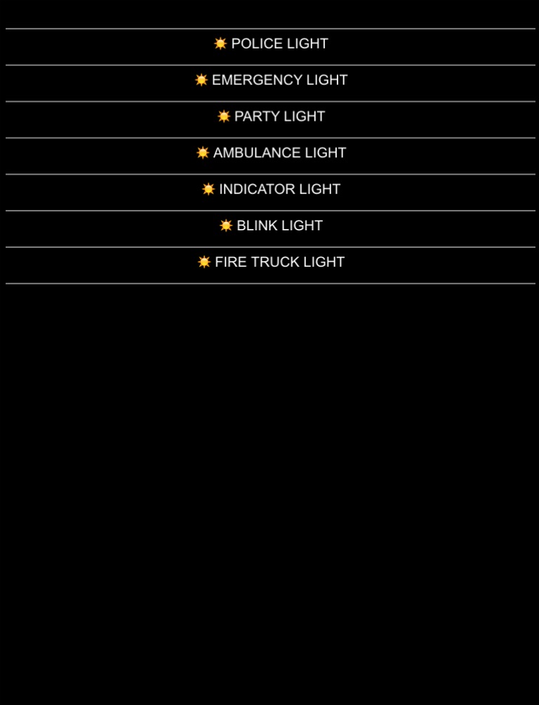 Just fun with this amazing application. Now turn your mobile device in to police light, fire truck, ambulance, emergency, party lights and more.