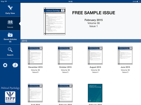 CURRENT SUBSCRIBERS to Political Psychology can “pair” their device with their personal or institutional subscription to enjoy full access in this iPad edition.