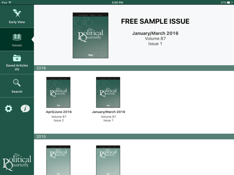 CURRENT SUBSCRIBERS to The Political Quarterly can “pair” their device with their personal or institutional subscription to enjoy full access in this iPad edition.