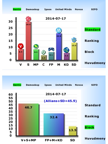 * Färska opinionsmätningar från alla stora opinionsinstitut, informationen hämtas löpande, direkt till din telefon/platta!