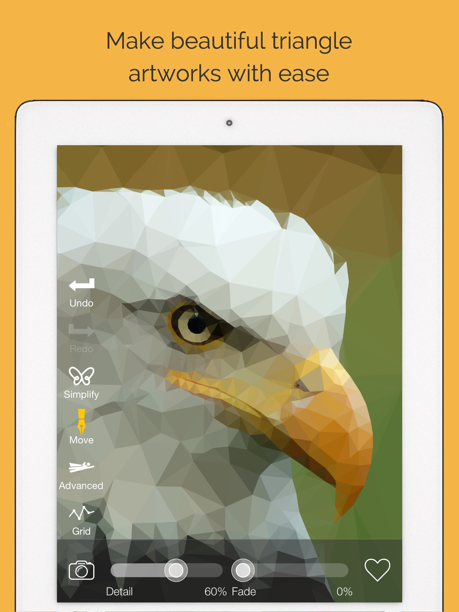 + Adjustable Fade Slider to show your preferred blend of triangles and original image.