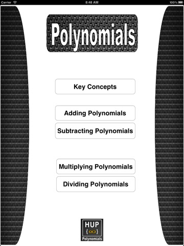 This app was designed to help Jr High students work with polynomials. With the information presented there are videos to help explain all the concepts needed to be successful with polynomials at a Jr High level.