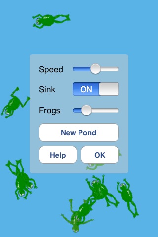 Tap the screen to get controls: change the number of frogs, change the speed, stop the frogs from sinking to the bottom.