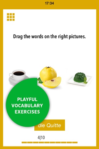 • Practice chapter for chapter with pictures: match the German word with the picture and learn new German words in a fun way.