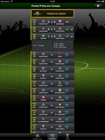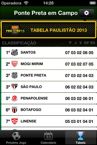 Fácil e simples, "Ponte Preta Em Campo!" traz alertas configuráveis que te avisam quando a Ponte entra em campo, além de um calendário de jogos e a tabela do Paulistão.