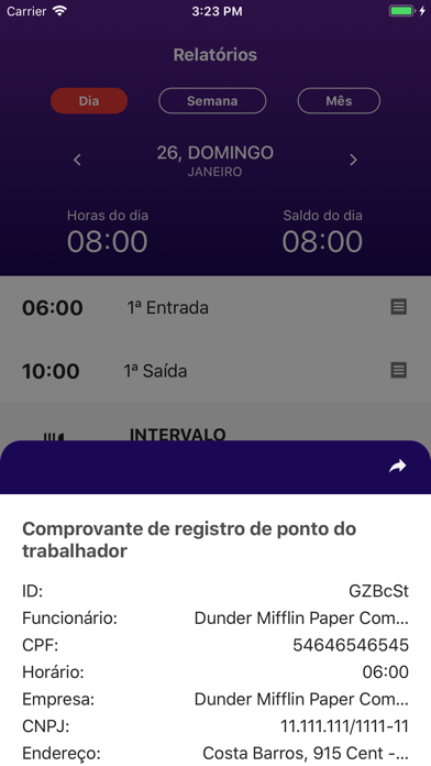 É possível também navegar pelos registros de pontos diariamente, semanalmente e mensalmente em poucos toques, visualizando as horas trabalhadas e saldo de horas por período.