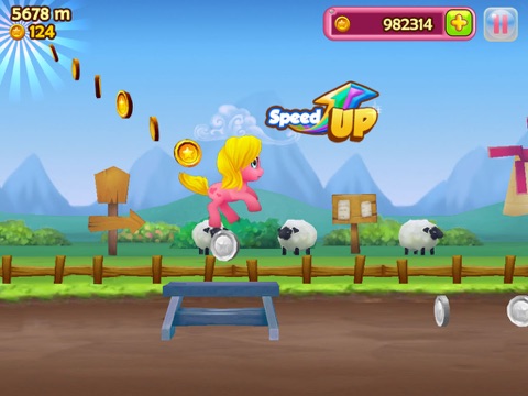 Lets follow our cutest pony to explore the colorful world! Pinky is a happy pony. She lives in beautiful village. Everyday she will run in every corner of the village so that she can collect coins. However its not an easy job. On her way to collect coins, she need to avoid many obstacles! Now, lets see how many coins can you collect and how far can you run!