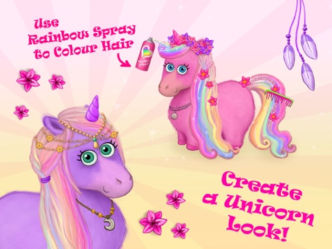· Unicorn Look: Color pony hair like a rainbow, stick a unicorn horn and make them look as dream unicorns. Pony sisters will look even more magical after you choose flower and sparkling jewelry accessories for their magic hair!