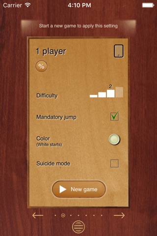 - "Suicide mode" option against the computer: Lose all your checkers before the computer!