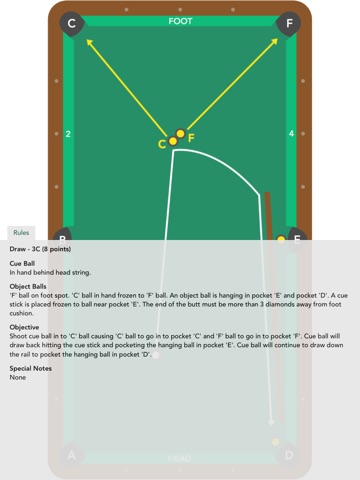 - easy navigation. Swipe left/right to browse the pool table diagrams. Swipe up/down to show or hide the rules for that trick shot