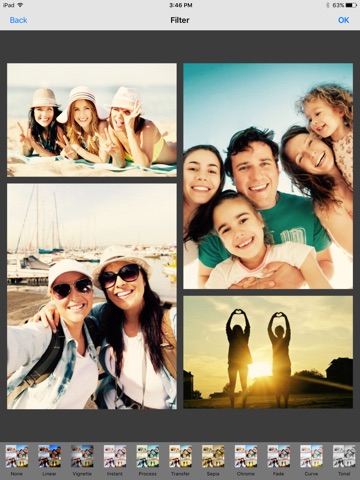 * Just tap on the lower-left Frame icon, and swipe to select a frame to make an instant collage!