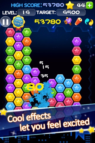 Cant help to download the casual games - *POP Six Stars*, The latest game play - hexagon, The rational use of props to easily pass through, Cool effects let you feel excited, POP every day make your highest score!