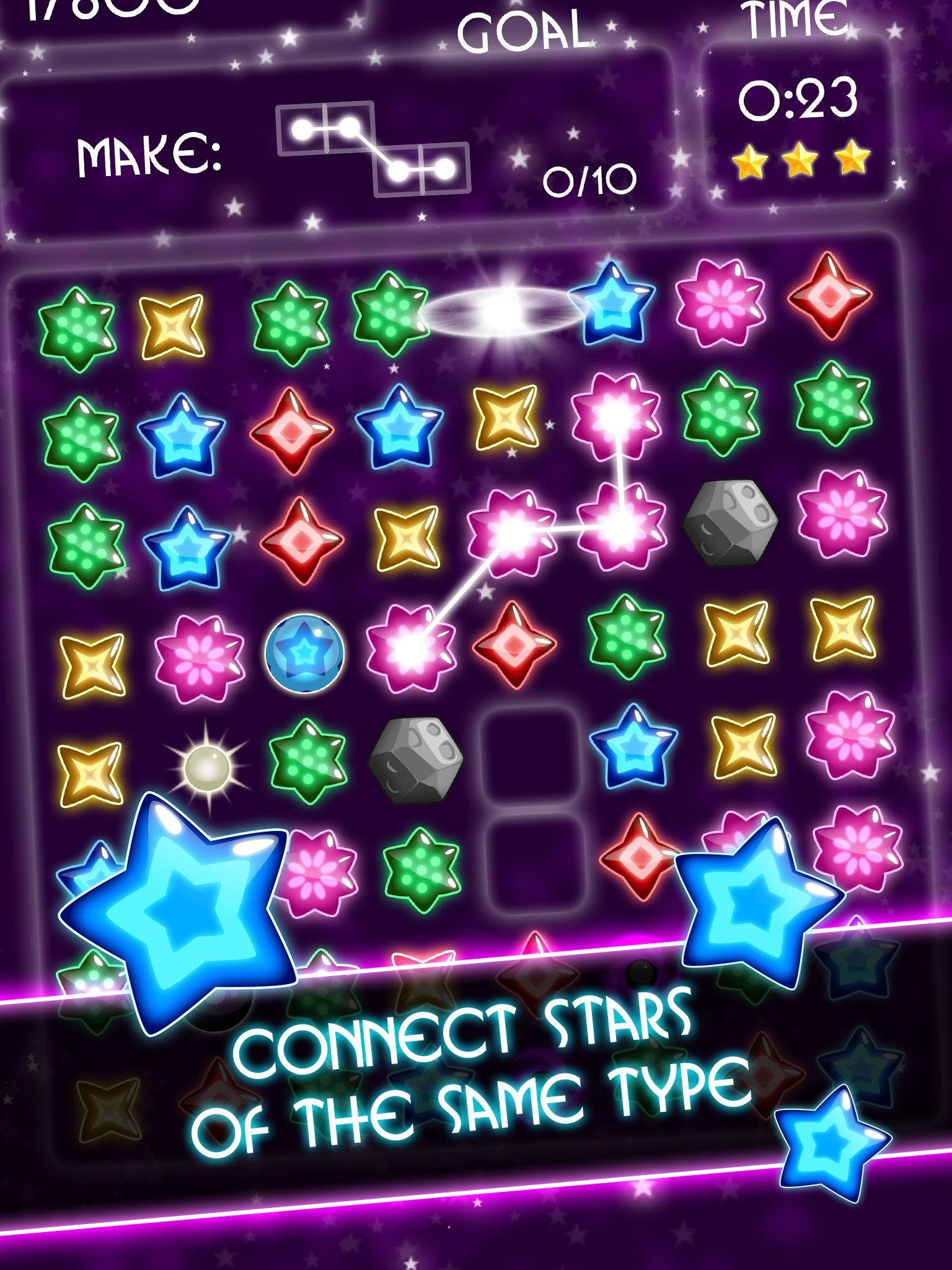 Get ready to pop some stars! Pop Stars is a simple and fun puzzle game that you’ll love. Swipe across the game board to create chains of similar elements and pop them to clear levels with different challenges. Can you beat all the challenges in Pop Stars?