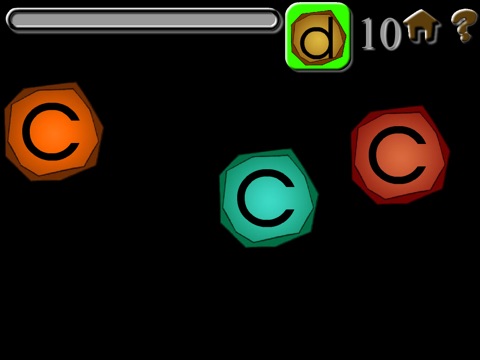 Letters appear on screen, inside fun shapes. Some are the ‘right’ letter; some are not. Touch a ‘right’ letter and its shape pops.
