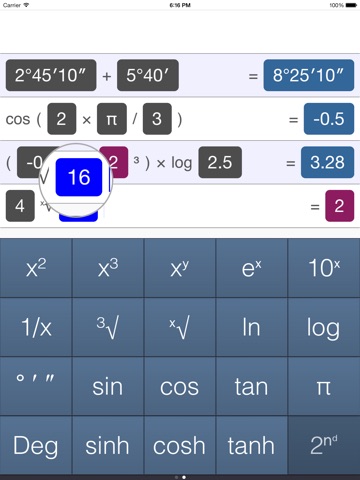 Large screen: PopCalc uses the top part of the screen to display the lines of current and previous calculations. You can scroll through them by simply sliding your finger across the screen
