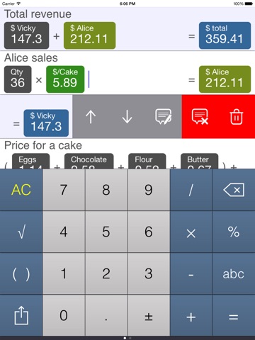 Edit your calculations: All lines of calculation can be modified or deleted at will