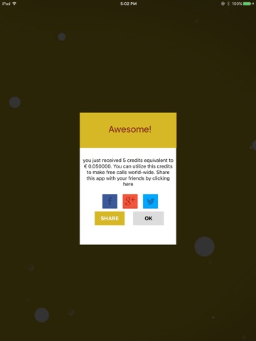 POPCALLS will send you in-app video ads of approx 30 sec. Each time watching these ads you are rewarded with calling credits. You watch these ads whenever you want and spend your credits when as needed. On average one video ads is allowing for 10 minutes free international calling). Watching 2 a day will charge your credits with 400 minutes of free calling per month. The more you upload POPCALLS ads the longer you can have calling fun.