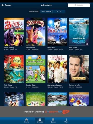 •Lots of genres, including: Adventures, Animated, Comedy, Fairy Tales, From Books, Sci-Fi/Fantasy, Wild Kingdom