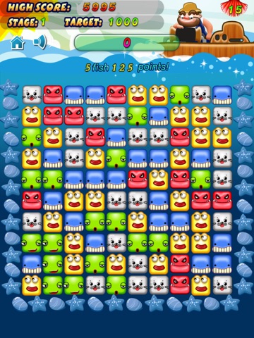 The fishermen want to catch our lovely fish. Help these small fish escape. PopFish is a very popular game on iOS. There is no time limit. Just tap two or more fish of the same color, the more fish you pop, the more score you will get.