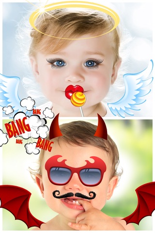 Select from your photos of friends, faces and places. Enhance them easily with PopFX, by placing a selection of hats, glasses, beards, wings, moustaches, speech