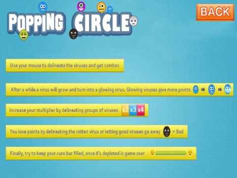 The object of the game is to clear the board by collect the Viruses. The more Viruses you clear in a circle, the higher your score and the further you can progress in the game !