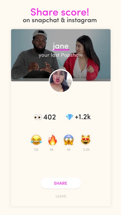 Share your score on Snapchat and Instagram Story!