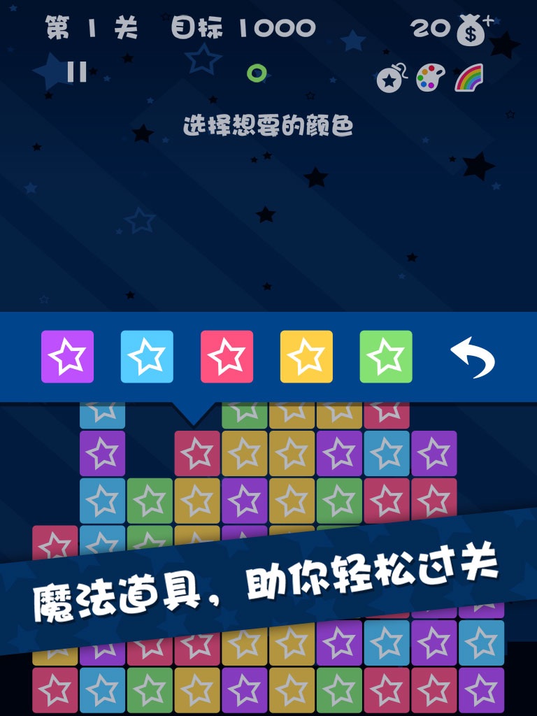 Popstar简单智慧,老少咸宜。玩popstar,只需要点击颜色相同的方块,消去方块就行,操作非常简单。