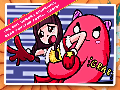 The adorable mega pop-star Toshi has been kidnapped by the evil demons… again! This time they used her DNA to create zombie clones and locked her soul up in the dungeons of hell. Without her supernatural demon-killing dancing powers to protect us, the evil lord of demons can now easily take over the world!