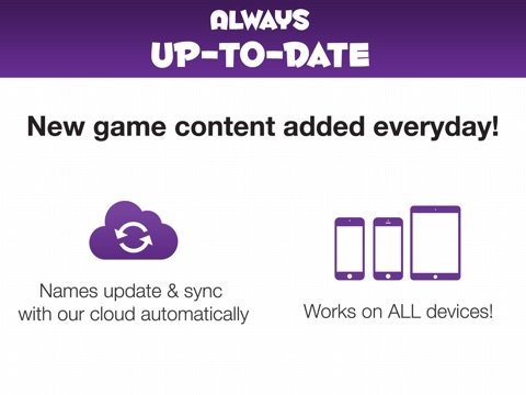 - Game content automatically syncs (each time you play) with our cloud database of 7,600+ famous names, characters and pop culture words. More clues added EVERYDAY!