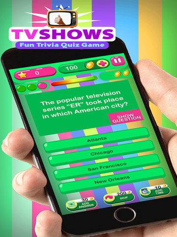 This quiz trivia show will provide you with lots of interesting facts about worlds most popular TV shows and give you an opportunity to find out about private lives of your favorite actors and actresses from TV shows. This trivia game, which is now at your disposal, is offering a variety of TV quiz questions and answers which can help you learn about your favorite TV shows. TV quizzes bring excitement and fun! This quiz show is one of the best TV trivia games you have ever seen and played! Download this awesome TV trivia game and enter the magnificent world of the TV quiz shows you dont see every day! Fasten your seat belts! Become a member of the privileged society of TV show quiz lovers and book yourself a ticket for one the funniest rides you have ever been on!