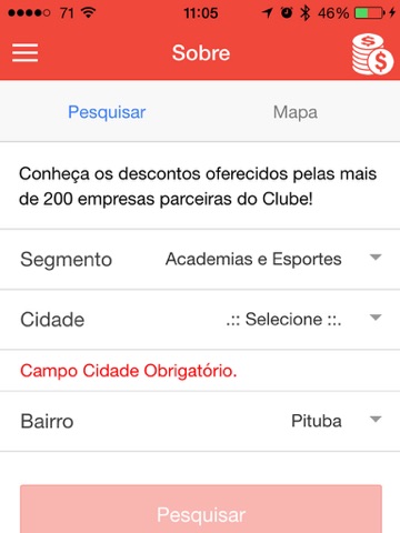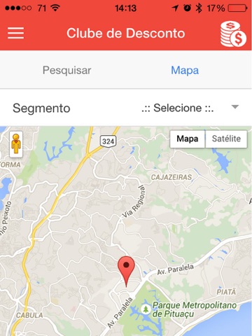 - Clube de Desconto - Permite pesquisar as empresas parceiras do Clube de Desconto do Servidor, filtrando por segmento, cidade e bairro ou por geolocalização.