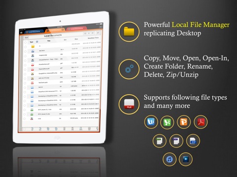 · App helps you access wide range of Documents hosted on your sites including the MS Office Documents (Word, Excel, Outlook, PowerPoint) PDFs, Images Emails, Task Lists, Calendars and etc.,