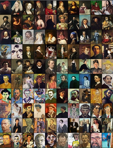 - 100 portrait paintings from masters featuring artwork spanning 500 years