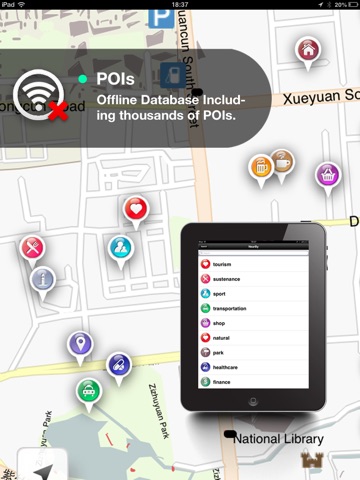 1.Completely offline map and navigation,work without network connection or data roaming which helps your save money.