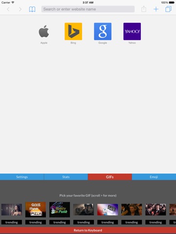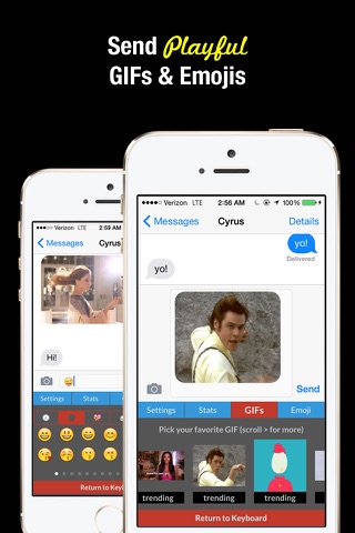 Feeling playful? >> Instantly send GIFs to you friends, or express yourself with Emojis without leaving the keyboard.