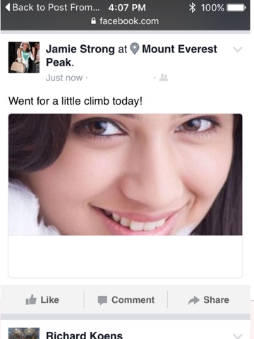 Were you just at a cool location and take lots of great photos but didnt post them on Facebook yet? Now you want to post the photos and make sure your friends really know that you were there? With Post From Any Location you can make it appear that you are currently at any location in the World! You can even tag Friends!