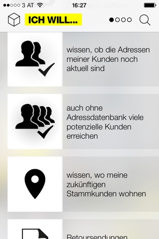 Die Post Business App bietet eine kompakte und leicht verständliche Übersicht über das Werbepost Produktportfolio und Mail Solutions. Sie kennen Ihr Anliegen, wir bieten Ihnen das richtige Produkt oder die geeignete Lösung. Nützliche Tools unterstützen Sie bei der Planung und Gestaltung Ihrer Werbemittel. Außerdem bietet Ihnen die App den direkten Kontakt zu Ihrem Kundenbetreuer oder dem zuständigen Geschäftskunden-Team.