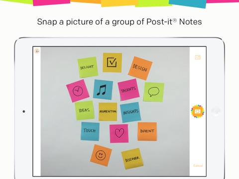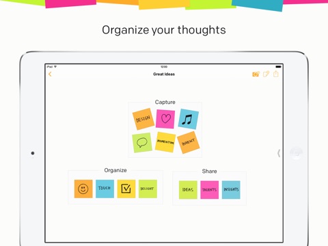 Useful app to structure ideas or projects with sticky notes. The results can be easily used digitally (as PDFs, slides tables, etc. ). Two wishes: - iCloud and - copy and paste of sticky notes.