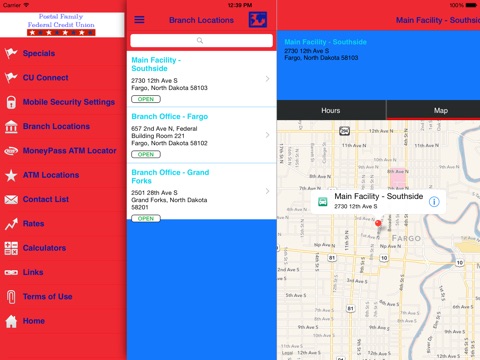•Links to Postal Family Federal Credit Union Facebook and Twitter pages