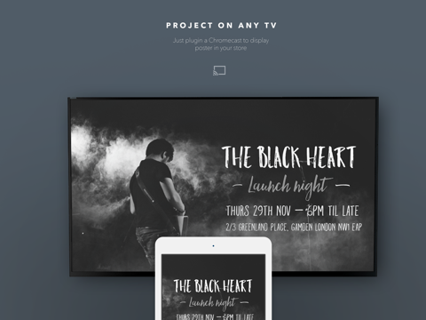 Put your posters on a big screen so more people can see them. Plug in a Google Chromecast into your TV to get started. Requires subscription.