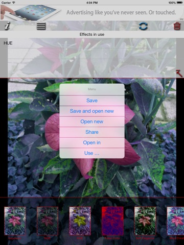 You can share photos with social networks, forwarding it directly with the other app or use it with the functions of iOS.