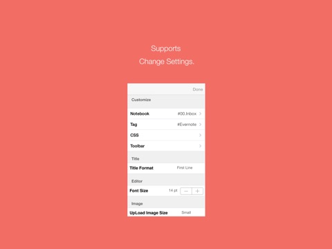 - Support Custom CSS. It restricts to the state that can use tag and elements in Evernote.