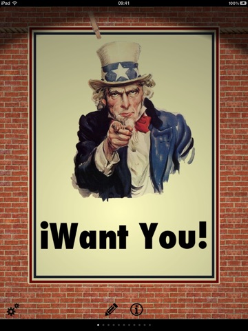 In Poster Artist included are classics like Uncle Sam “I Want You!”, Rosie the Riveter “We Can Do It!” or the friendly GI Joe with a coffee cup.