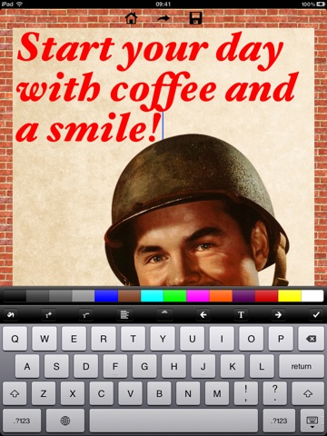 Create your own poster in a few steps in the beautifully designed app Poster Artist! Choose a poster from a template, write your message into the text box and customize your text with different fonts and colors.