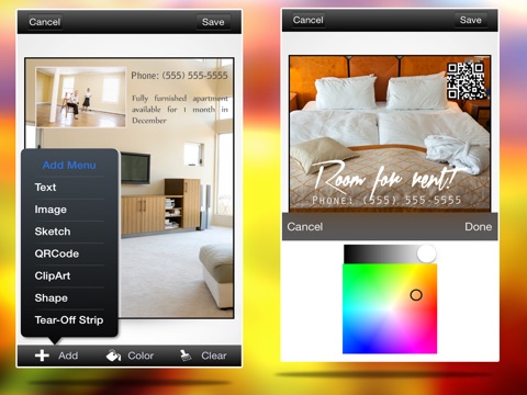 Forget about old fashion software that limited your creativity when it came to advertise your goods/services! This app was designed with every detail in mind to make it easy yet attractive ad posters that will grab your attention!