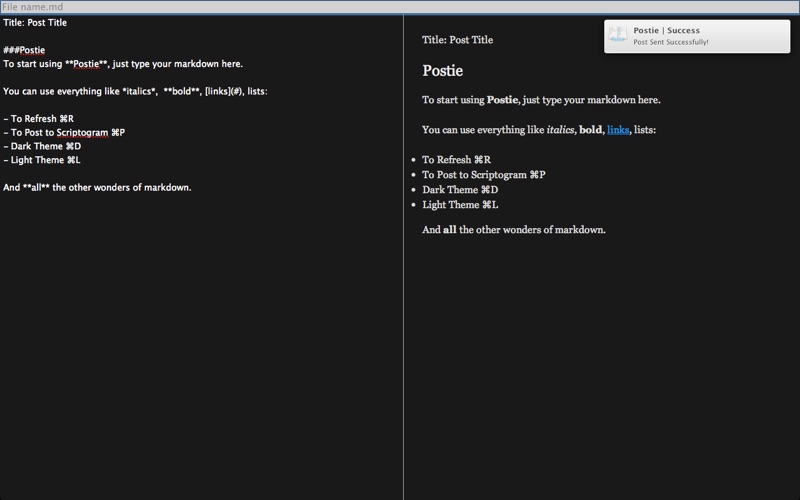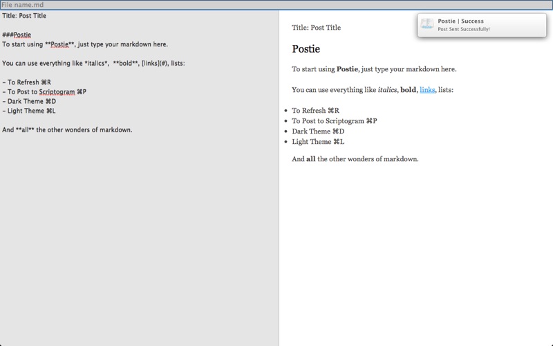 You can easily write your posts in Markdown and then post directly to Scriptogram with Command + P.
