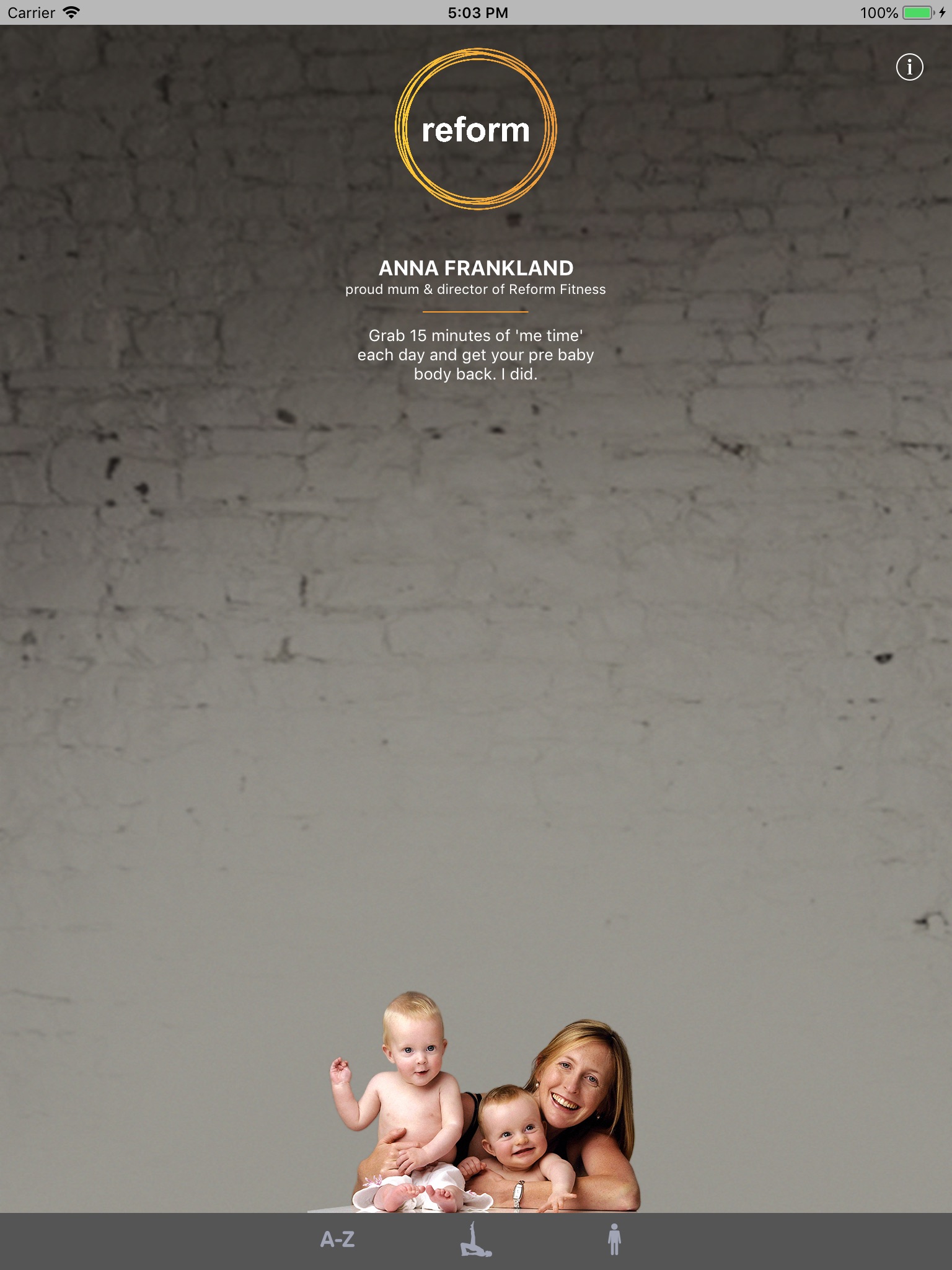 The workouts contained in this App contain a series of specific exercises designed to gently build deep abdominal and lower back strength and assist with recovery from pregnancy and childbirth. Each workout consists of a series of floor exercises that can be completed anytime, anywhere, with or without your baby. Choose a workout from the Postnatal App that fits with your lifestyle and your goals and enjoy dedicating time to yourself.
