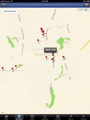 The Potchefstroom App exists to bring relevant business and event information to the public to have information at their fingertips and ease navigation in town with build in GPS coordinates to navigate to your favourite restaurant or guest house.