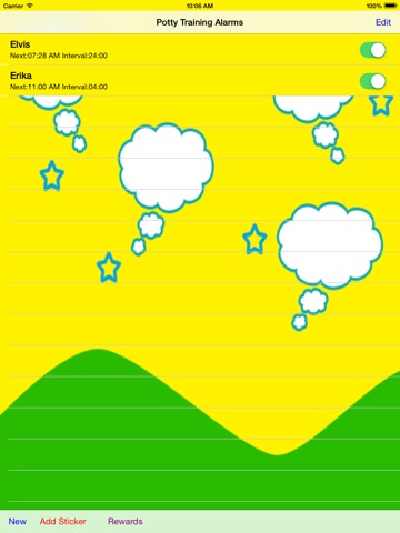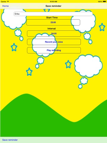 This app offer a wonderful solution which helps children remember to use potty chair ,for pee in specified intervals, by playing recorded audio of their own or beloved ones sweet voice. it can award beautiful stickers for each successful attempt of kid.