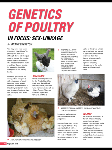 US Based Chicken magazine published bi-monthly. The magazine includes articles on specific breeds, general tips and health advice, maintenance for equipment and housing, breeding, brooding and hatching information, overseas articles comparing styles and standards, show reports, product reviews, egg laying, display advertising for relevant products and services and much more.